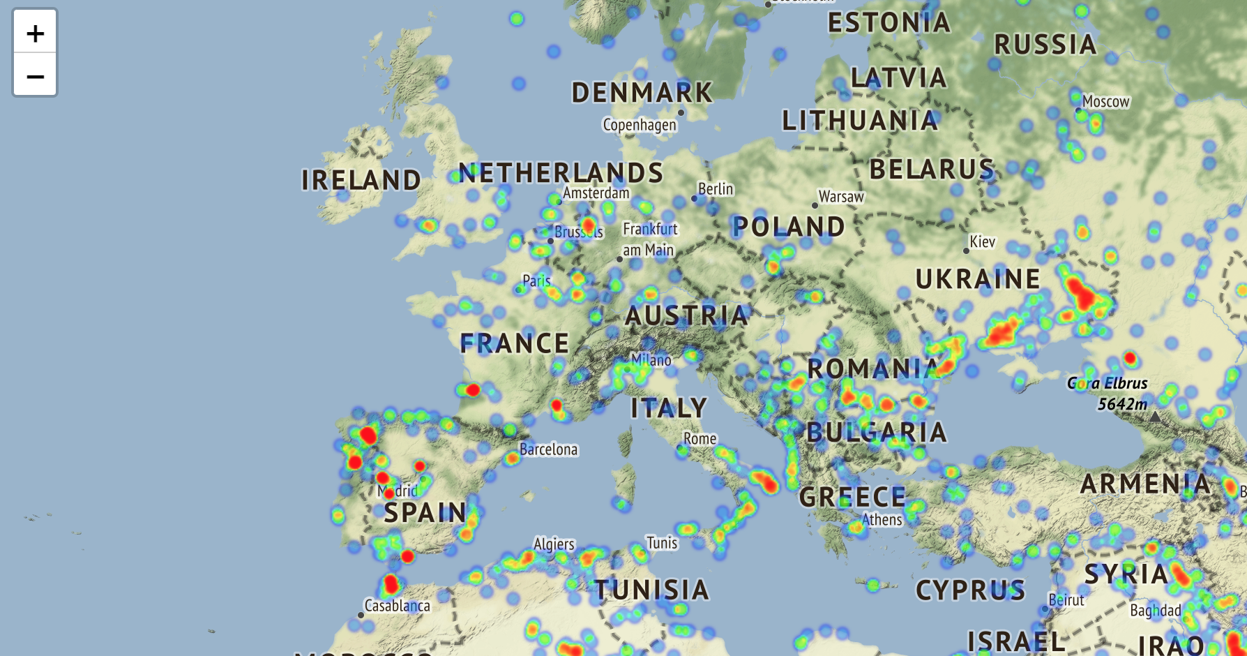 Cette carte mondiale mise à jour régulièrement montre les incendies / feux actifs dans les dernières 24 heures sur Terre.