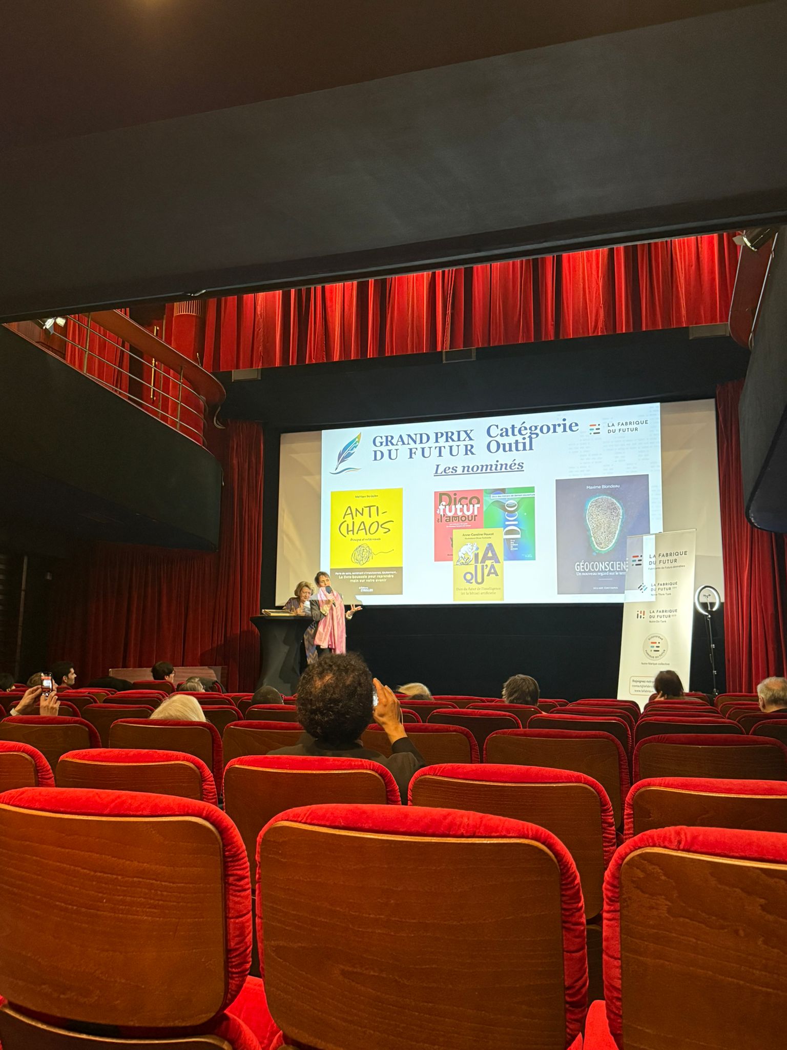 Le jury de la Fabrique du Futur présidé par Bettina Laville et composé de Geneviève Bouché, Gaspard Chameroy, Anne Frédérique Gautier, Sandrine Maisano, Thomas Michaud, Christophe Pouilly, Eric Seulliet, Alban Torette-Dedrie a eu la joie de remettre le Grand Prix du Futur dans 5 catégories à Paris : Outil, Fiction, Podcast, Essai et Coup de Coueur;