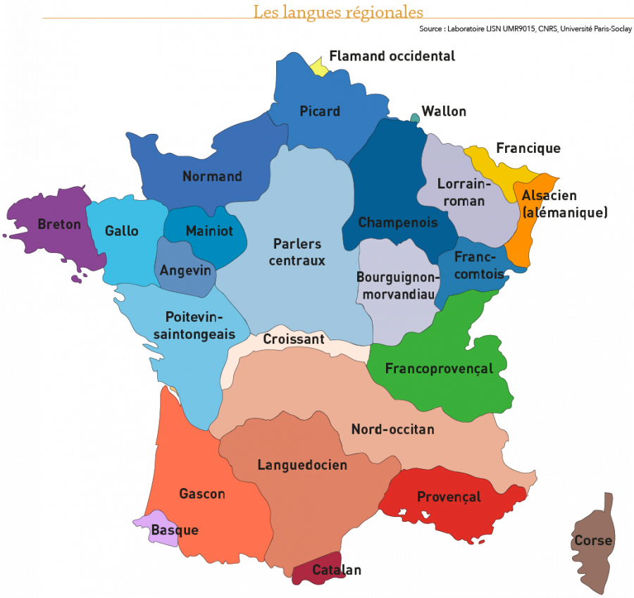 L’hexagone occupe une position particulière de point de rencontre en Europe et il existe une centaine de langues régionales. Elles se classent en langues héritées de l’époque gallo-romaine (langues d’oïl et langues d’oc) auxquelles s’ajoutent le catalan, le corse et le franco-provençal. Mais on compte aussi beaucoup de langues germaniques comme l’alsacien, le francique ou le flamand. Et il faut ajouter les langues basques et bretonnes.