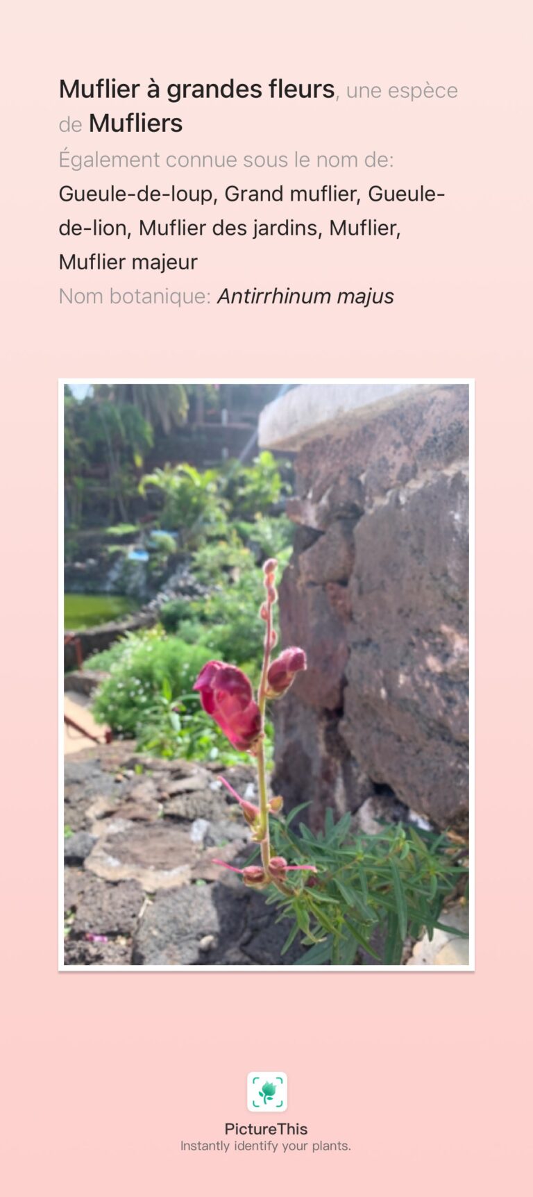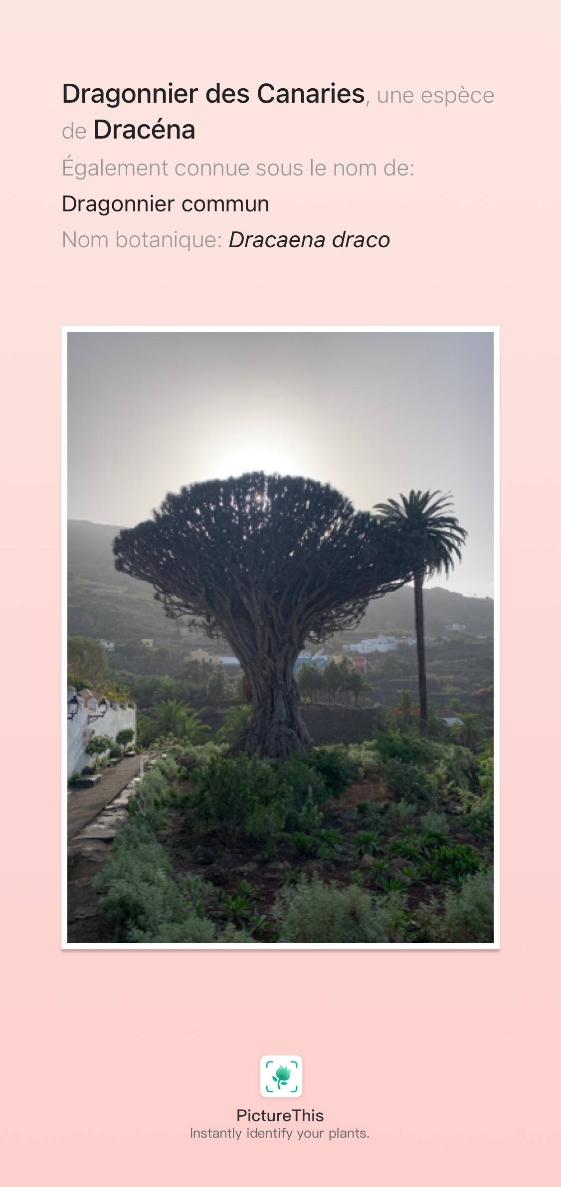 D’abord parce que grâce à l’application, j’ai pu soigner rosiers et arbustes de mon jardin en détectant rapidement leurs afflictions (tâches rouges, sombres, noires, rouille etc…) et surtout parce qu’il a ouvert la porte de la botanique lors de mon voyage aux Canaries.