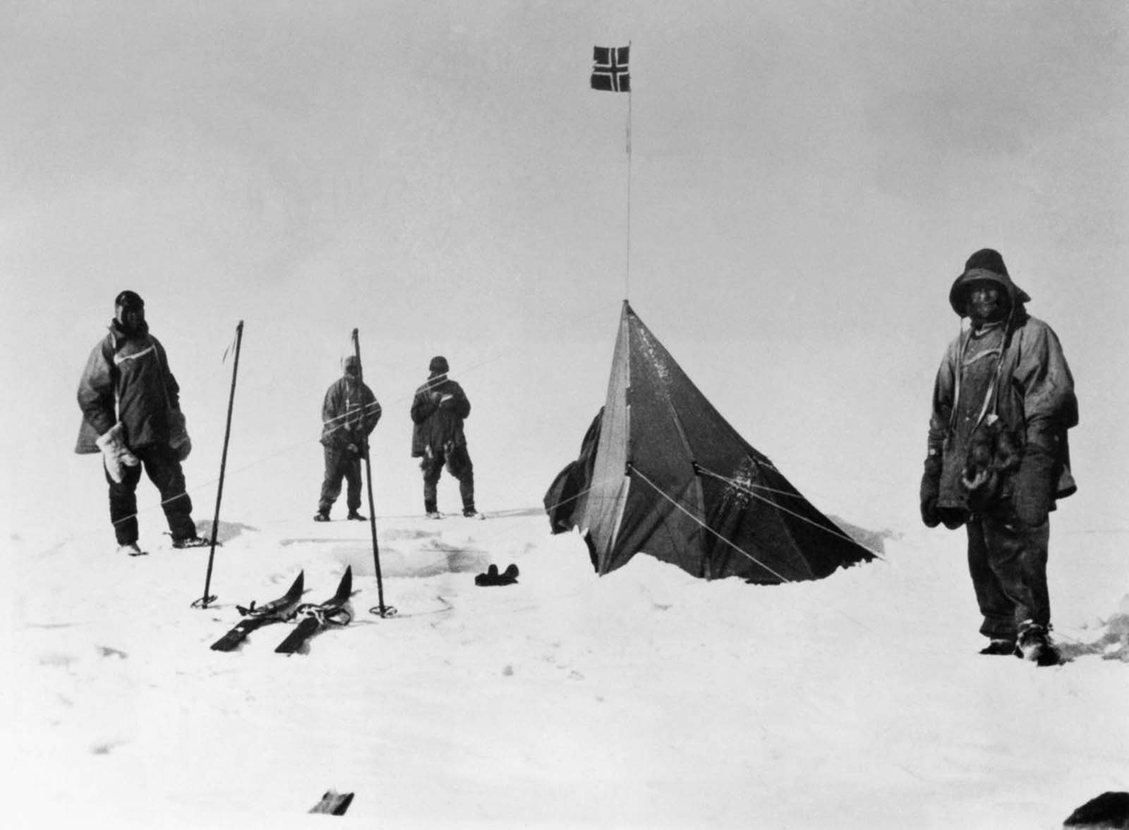 Amundsen établit son campement sur la barrière de Ross, dans la baie des Baleines. Il découvre une nouvelle route à travers le plateau polaire via le glacier Axel Heiberg. Une équipe composée de cinq hommes, dirigée par Amundsen, atteint le pôle Sud par cette route le 15 décembre 1911.